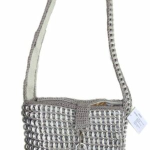 Ce sac a été réalisé en 8 heures avec 664 capsules de canettes inoxydables recyclées: triées, lavées, désinfectées, calibrées, assemblées au crochet avec du coton Blanc